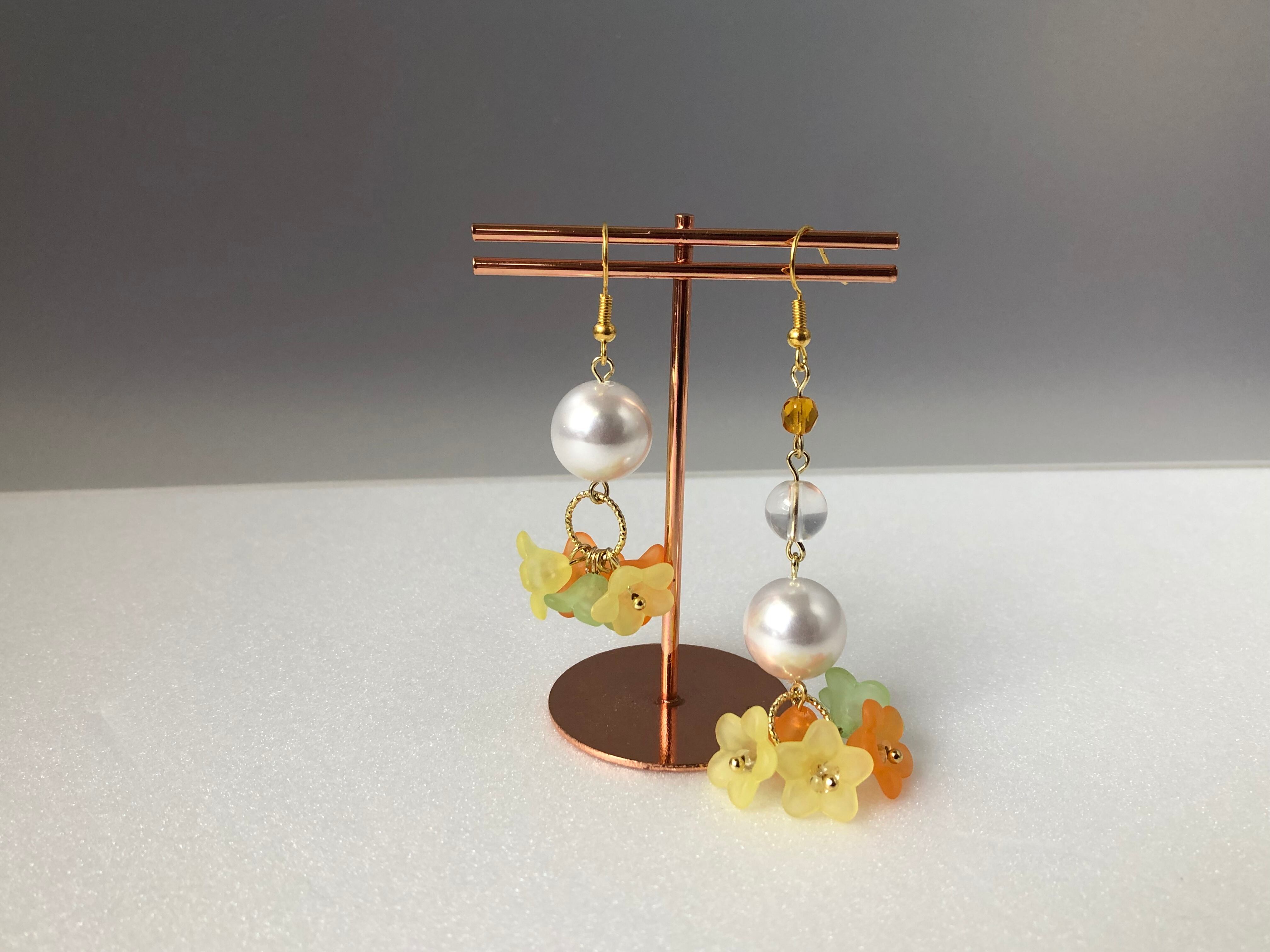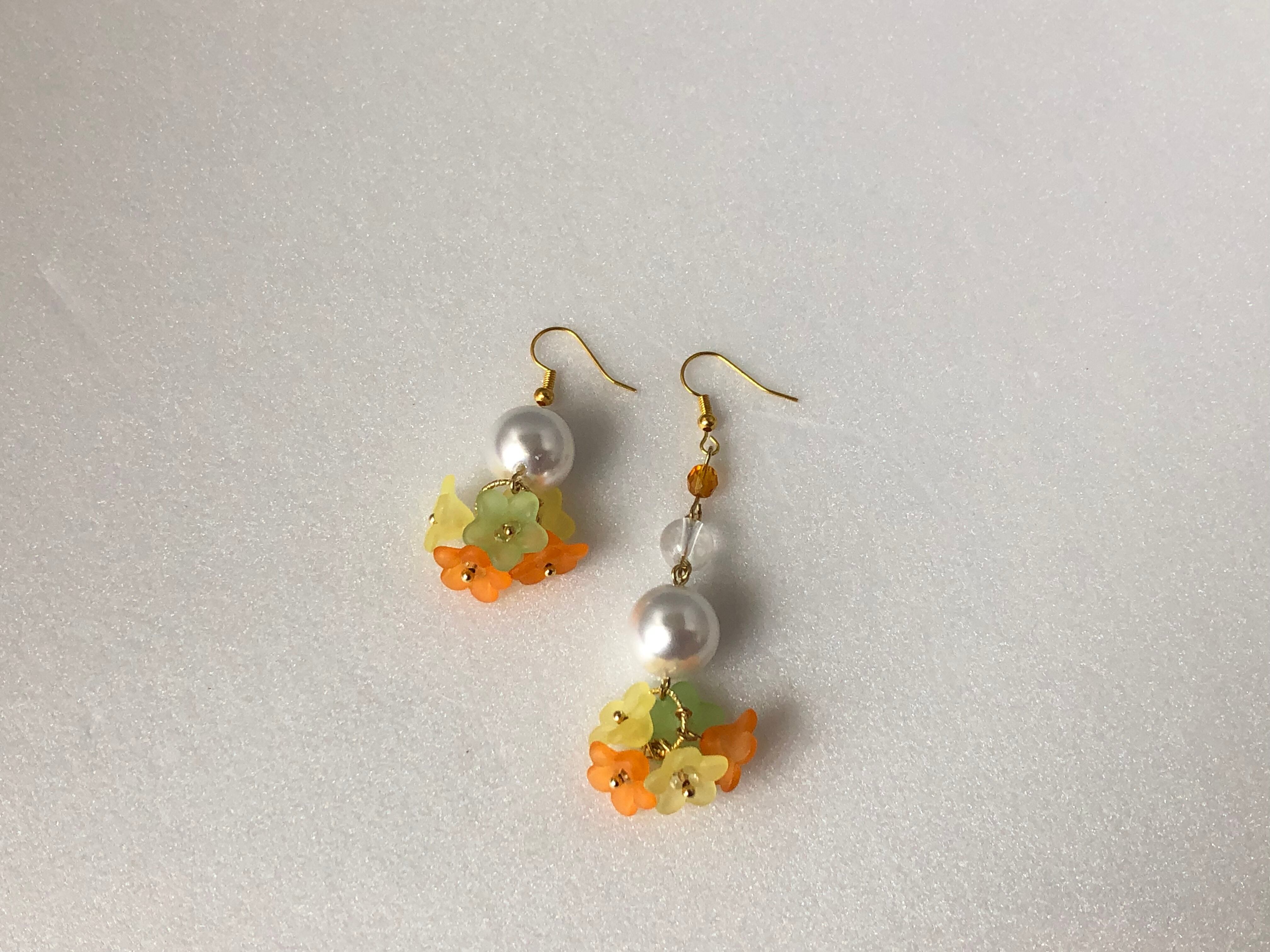 夏らしいカラーのお花をたくさんあしらった華やかなピアス✨